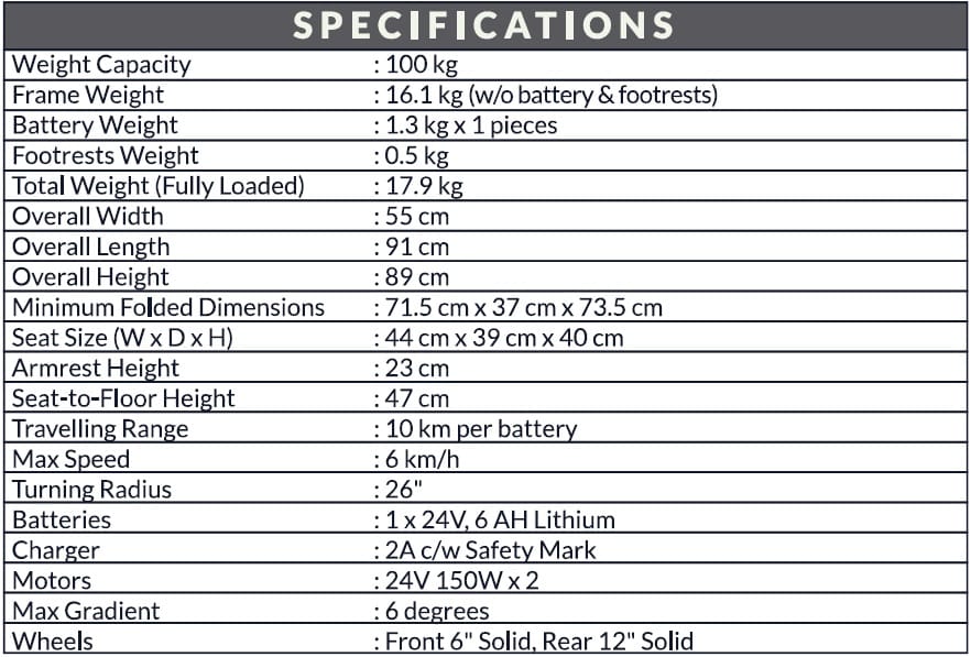 The battery is easily detachable and allowed for bringing onboard airplanes as carry-on baggage (subject to operator approval). With an upgraded controller and brakes, the wheelchair is easy to control and is able to brake completely on slopes. It is also easy to set the brakes to neutral and push the chair manually when needed.